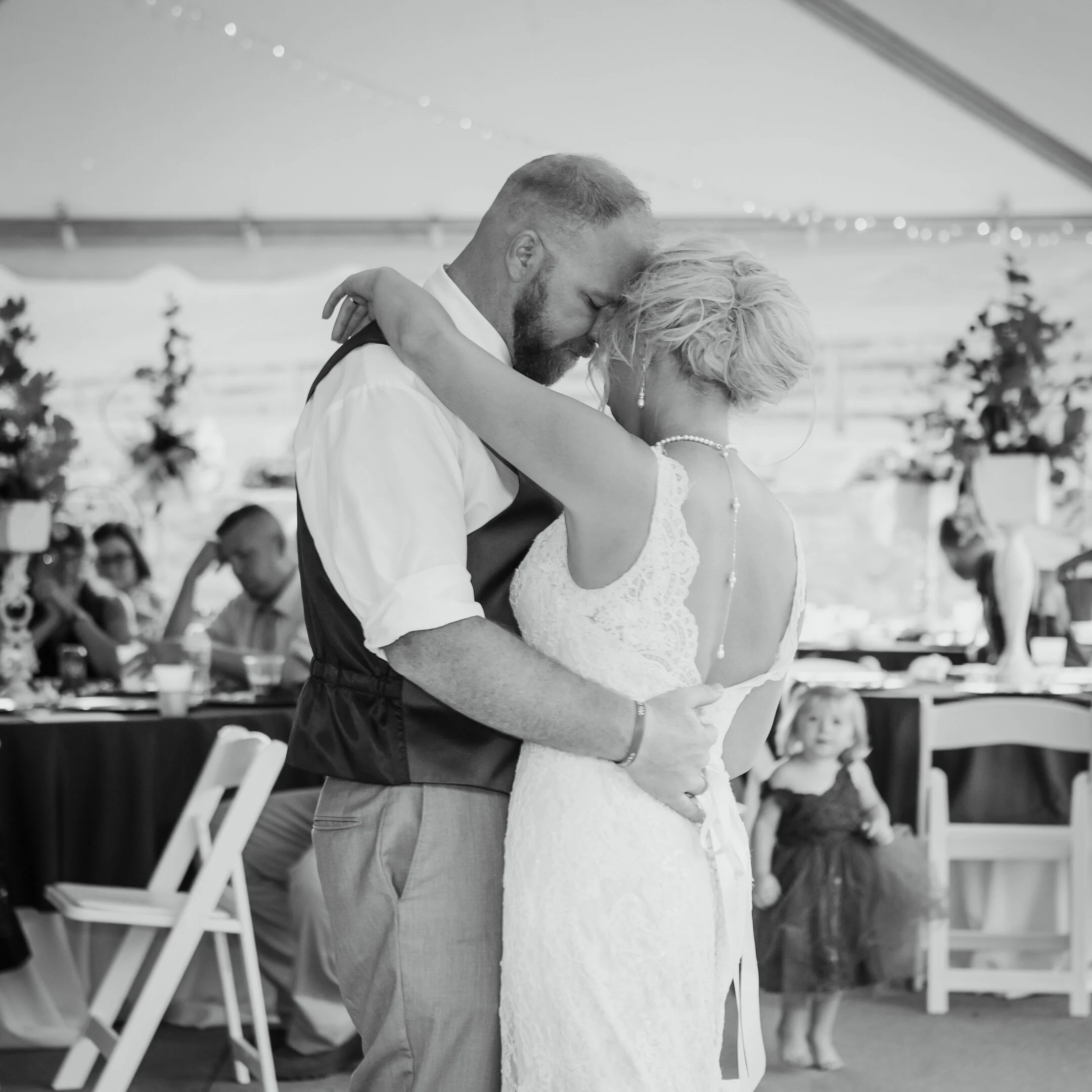 The reception area was equally as stunning as the chapel. There were all kinds of lovely details within the decor — I especially adored the dessert table and Polaroid guest book! Everything was set up beautifully with a tent, dance floor, and a pond in the background with a precious little dock. There were toasts, music, dancing, air horns (courtesy to the groomsmen, haha), and all kinds of whacky fun as the night drew on!